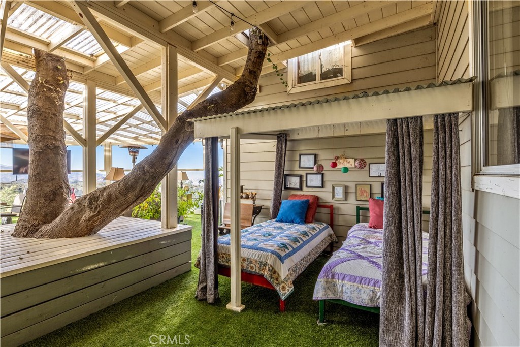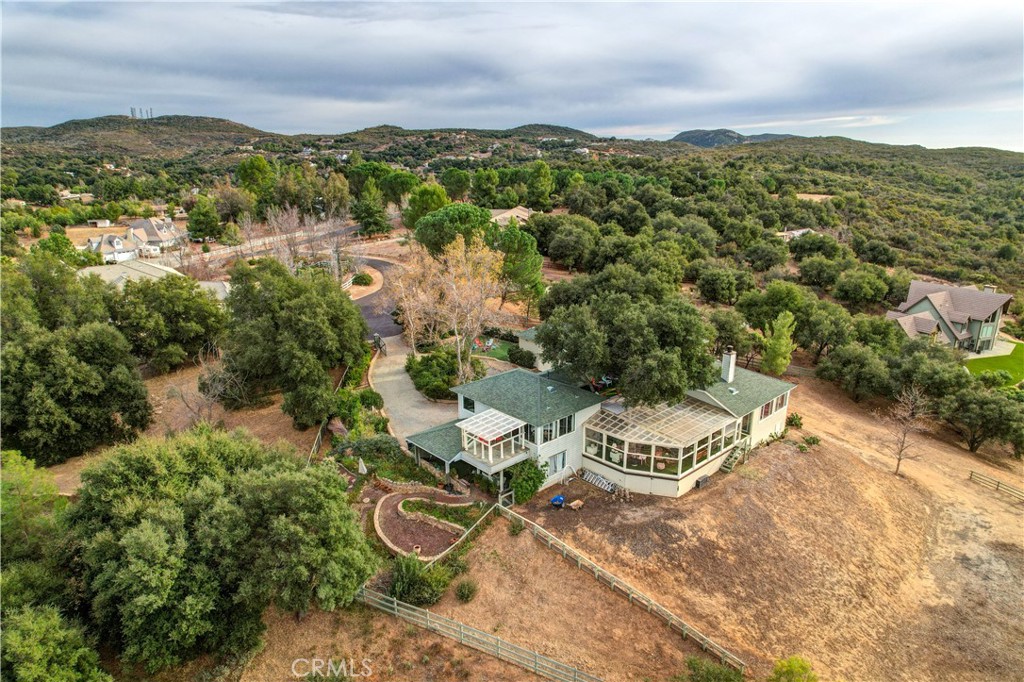 Nestled in the exclusive gated equestrian community of Rancho Capistrano, this stunning 3,900 sq ft custom-built ranch estate sits on a sprawling 2.36-acre street-to-street parcel, offering a seamless blend of luxury, functionality, & natural beauty. Designed, built, & owned by its visionary architect, the home features 5 bedrooms, 5 bathrooms plus office & includes a 1 bed/1 bath "granny flat" with a private entrance & 560 sq ft enclosed porch - ideal for multigenerational living or guests. The thoughtfully designed floor plan provides privacy with separate wings for the primary suite, which boasts sweeping hills and mountain views, & the guest bedrooms. The main level features an all-encompassing great room with a custom stone & rock fireplace plus a convenient bedroom & full bath. An 1,100 sq. ft. enclosed porch wraps the back of the home for ideal entertaining space & showcases a majestic central tree as well as stunning panoramic views of Santiago Peak, San Gorgonio, & San Jacinto mountains. A charming enclosed front porch is the perfect warm welcome to this quintessential county home. Located at the end of a cul-de-sac with a gated entrance & circular driveway, the property also includes a 2-car garage with a workshop/3rd car space & an additional separate drive access leading to a mid-level flat parcel, ideal for a pool and/or an ADU or even horse/small animal space. Further down, the lower-level area is perfect for developing a dedicated equestrian area with space for corrals, a tack room, or feed storage. You'll even find a garden space where you can grow your own fresh organic fruits & veggies for farm-to-table meals. Rancho Capistrano is an intimate community of just 133 homes set on 2+ acre homesteads, & its 3,000' elevation offers cooler temperatures, even an occasional winter snow dusting, & endless outdoor opportunities. Enjoy horseback & hiking trails, a clubhouse with tennis/pickleball, & basketball courts, a natural pond, a playground, & year-round community events. Surrounded by the Cleveland National Forest, the location provides a peaceful haven with convenient access to the Orange County coastline (35 min), Lake Elsinore (15 min), local ski resorts, & Temecula wine country, combining all of the best equestrian, outdoor, & luxury living. With low HOA dues & a rare combination of privacy, views, & endless potential, this ranch is a once-in-a-lifetime opportunity - your best life starts here! CAN BE SOLD FURNISHED OR UNFURNISHED.